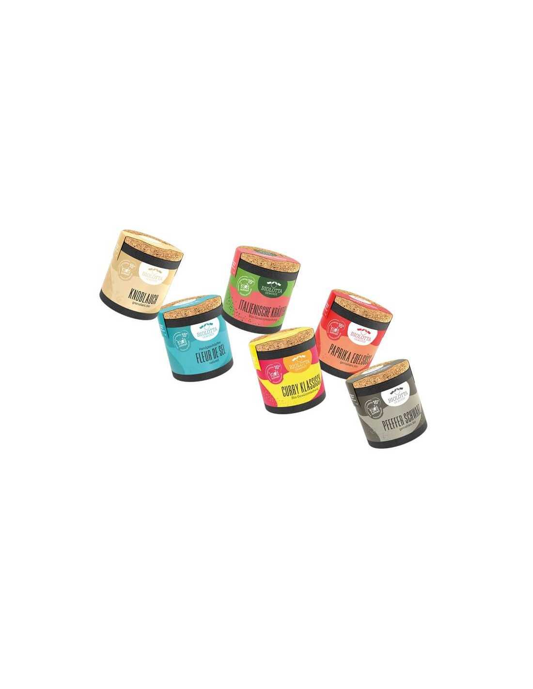Aller Anfang ist einfach: Du steigst gerade erst ein in die Welt der Gewürze und bist auf der Suche nach den absoluten Klassikern für deine Küche? Dann haben wir genau das Richtige für dich! Unser Erstausstatter Gewürzset vereint die Basisgewürze der heimischen und fernen Kulinarik und peppt so jedes deiner Lieblingsgerichte auf. Das feine Fleur de Sel und der schwarze Bio Pfeffer zählen zu den edelsten der Standardgewürze und verleihen deinem Essen direkt auf dem Teller den letzten Schliff. Wenn du es liebst, kreativ und bunt zu kochen, probier es doch mal mit unserem Bio Paprika edelsüß oder dem granulierten Knoblauch. Und auch international hat dieses Set einiges zu bieten: Die Italienische Kräutermischung bringt den sonnigen Geschmack Bella Italias direkt zu dir nach Hause und in unserem Bio Curry steckt die orientalische Vielfalt von Koriander, Kurkuma, Kreuzkümmel, Bockshornklee, Ingwer und Nelke. Na, da kommt doch Appetit auf oder?